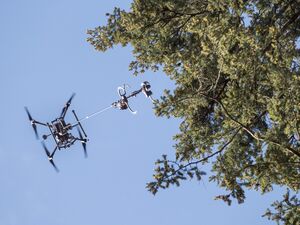 Drohne im Flug mit Werkzeug zur Probenentnahme Copyright / Quellenangabe: Andreas Müller