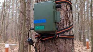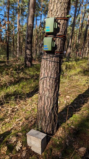 Baumstamm mit akustischem Sensor Copyright / Quellenangabe: Franz Kroiher