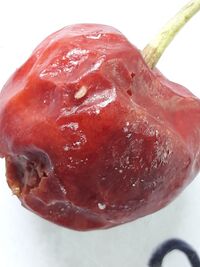 Drosophila suzukii kann eine Vielzahl von Früchten befallen. Dazu zählen Kirschen, Himbeeren, Brombeeren, Heidelbeeren, Erdbeeren, Aprikosen (Marillen), Zwetschken, Pflaumen, Holunderbeeren und Tafeltrauben. Auch Exoten wie Feigen und teilweise sogar Tomaten und Kiwi können betroffen sein. Besonders anfällig sind dünnschalige und weichfleischige Früchte. Befallene Früchte zeigen kleine Einstichstellen, aus denen häufig Saft austritt. Später treten weiche Stellen, Verfärbungen und Schrumpfungen auf, teils begleitet von Sekundärinfektionen durch Mikroorganismen. Aufgrund der Zero-Tolerance-Richtlinien für lebende Larven im Handel sind solche Früchte meist nicht mehr vermarktungsfähig. Besonders anfällig sind dünnschalige Früchte wie Kirschen, Himbeeren, Brombeeren, aber auch Zwetschken, Holunder und Tafeltrauben.