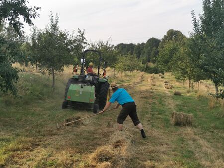 Am Ende der Vegetationsperiode empfiehlt es sich, den Grasschnitt auf der Streuobstwiese zu verteilen, damit er Wühlmäusen keine Versteckmöglichkeit bietet.