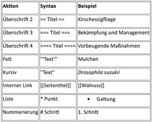Übersicht udn Beispiele Formatierung für Streuobst-Wiki.