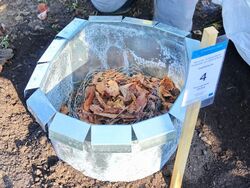 Details einer Direktsaatfläche samt Verbissschutz, Wühlmauskorb & SEPRO2 (zugleich Schneckenblech, Wurzelsperre, Ameisen- & Blattlausschutz; Quelle: superhochstamm.at).