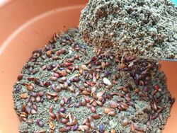 Stratifizierung: Lagerung des Saatgutes in Schichten von Sand in einem Tontopf etc. (© OIKOS 2025).
