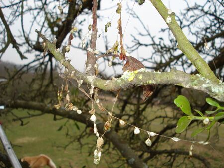 Klebrige Mistelsamen im Geäst eines Obstbaumes. Quelle: Stefan Schliebner